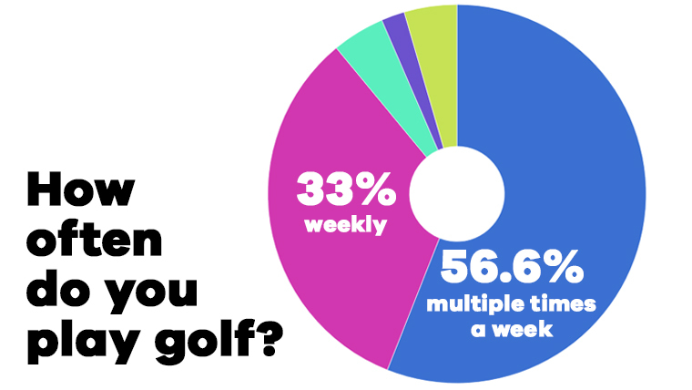 A whopping 89.6% of our readership admitted that they play golf at least weekly with more than half of respondents playing multiple times a week.